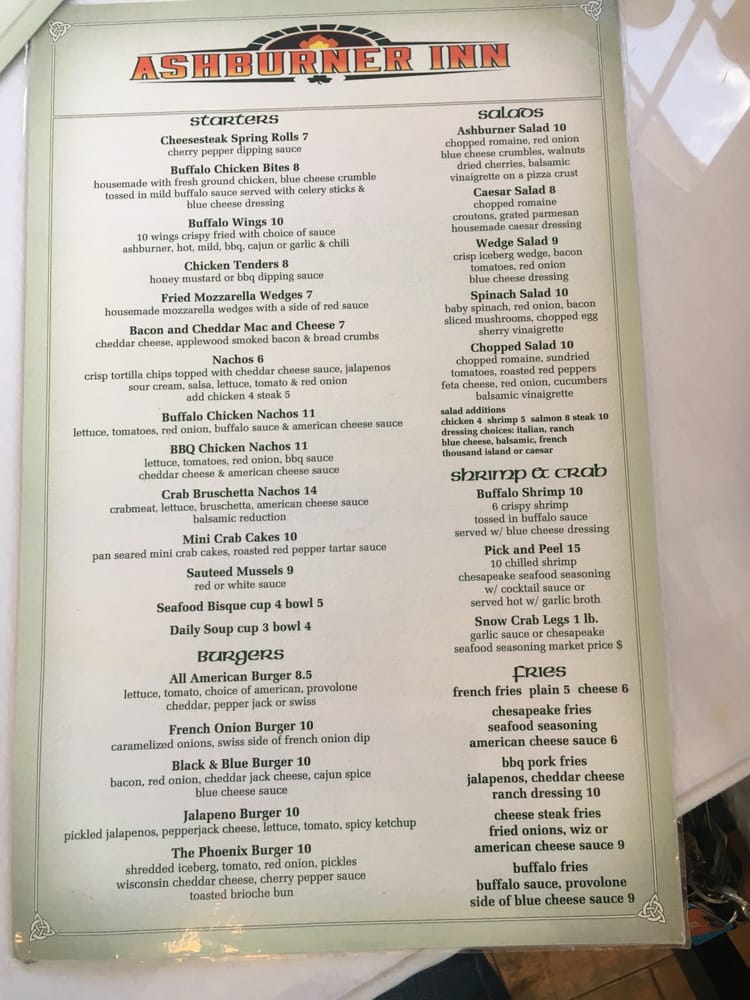 Introducing the menu at Ashburner Inn, a New American and Pizza restaurant located in Philadelphia, PA. This casual dining spot offers a range of delicious options, from hand breaded fried mozzarella appetizers to Mediterranean Tilapia entrees. Their Ashburner Sampler is a must-try, featuring fried mozzarella, Philly cheesesteak rolls, and crispy chicken wings. For seafood lovers, the Bourbon Salmon and Seafood Bisque are standout choices. The menu also includes a variety of soups and salads, including a Club Salad with chipotle ranch dressing and a Buffalo Chicken Salad. With options for vegetarians and a welcoming atmosphere perfect for groups and families, Ashburner Inn is a great choice for lunch, dinner, or happy hour. Don't miss their full bar, outdoor seating, and free Wi-Fi. Visit Ashburner Inn for a satisfying dining experience.
